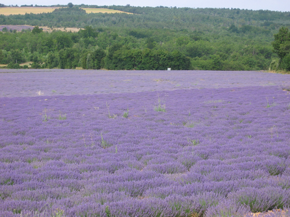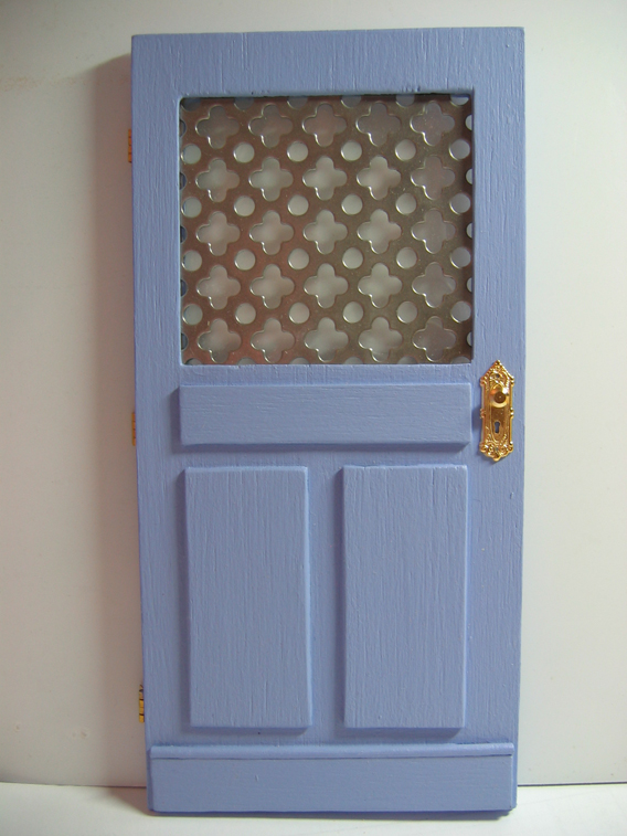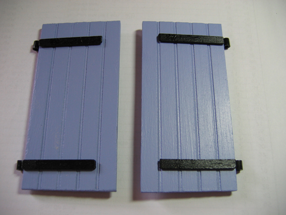 Les entourages des ouvertures sont blanc "cassé", les volets et la porte d'entrée couleur lavande.